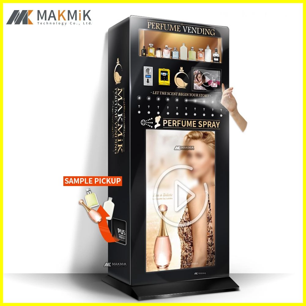 MAKMIK | MK-PM-S002-1 Perfume Spray and Sample Vending Machine, newly upgraded side-dispensing system, equipped with a 34-inch advertising screen