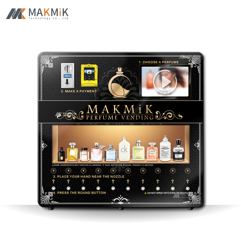 Discover the MAKMIK MK-PM-005 Wall Mounted Perfume Vending Machine with 10 nozzles. This advanced fragrance dispenser offers a wider variety of perfumes, perfect for retail spaces seeking efficiency and variety. Elevate your sales with the MAKMIK 10-nozzle perfume vending machine today.